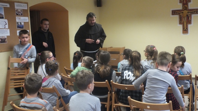 Co łączy św. Katarzynę ze św. Andrzejem? – na to pytani szukały odpowiedzi dzieci, które przybyły na spotkanie do salki św. Klary w sobotę 26 listopada. W tym dniu kościół wspominał św. Katarzynę, patronkę kolejarzy. Po prezentacji, która przybliżyła dzieciom kalendarz roku liturgicznego, a także krótką historię życia św. Andrzeja i św. Katarzyny wszyscy wraz z ojcem Masseo i ojcem proboszczem udali się na wycieczkę na kolej. Tam na dzieci czekali kolejarze, którzy opowiedzieli o swojej pracy, zwrócili uwagę na znaki, które znajdują się przy torach: semafory, zwrotnice, sygnalizację świetlną oraz już w budynku nastawni wprowadzili je w tajniki skomplikowanych przycisków, dźwigni i korb. Nie da się ukryć, że najbardziej zainteresowanym i zafascynowanym tym miejscem był ojciec Ksawery, który osobiście przekładał zwrotnicę i zadawał najwięcej pytań dotyczących migających światełek. W związku z tym, że w sobotę kolejarze obchodzili swoje święto, dzieci życzyły im dużo zdrowia i sił w niełatwej i bardzo odpowiedzialnej pracy oraz opieki ich patronki św. Katarzyny. Po wizycie na kolei przyszedł czas na niespodziankę- desery w Lodziarni pana Hałasa. Mimo to, że dzieci było dużo, a miejsca w lokalu mało, wszyscy z uśmiechem i apetytem zjadali lody z ,,górą” pysznej bitej śmietanki. Po długim spacerze odrobina kalorii nikomu nie zaszkodziła. A co łączy św. Katarzynę ze św. Andrzejem? – na to pytanie odpowie już każde dziecko, które było na spotkaniu- oczywiście kolej ( znak św. Andrzeja i św. Katarzyna-patronka kolejarzy).