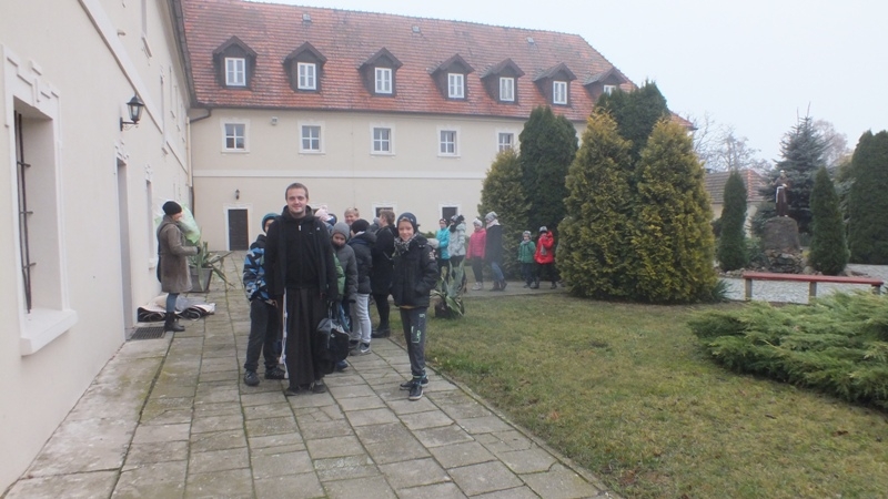 Co łączy św. Katarzynę ze św. Andrzejem? – na to pytani szukały odpowiedzi dzieci, które przybyły na spotkanie do salki św. Klary w sobotę 26 listopada. W tym dniu kościół wspominał św. Katarzynę, patronkę kolejarzy. Po prezentacji, która przybliżyła dzieciom kalendarz roku liturgicznego, a także krótką historię życia św. Andrzeja i św. Katarzyny wszyscy wraz z ojcem Masseo i ojcem proboszczem udali się na wycieczkę na kolej. Tam na dzieci czekali kolejarze, którzy opowiedzieli o swojej pracy, zwrócili uwagę na znaki, które znajdują się przy torach: semafory, zwrotnice, sygnalizację świetlną oraz już w budynku nastawni wprowadzili je w tajniki skomplikowanych przycisków, dźwigni i korb. Nie da się ukryć, że najbardziej zainteresowanym i zafascynowanym tym miejscem był ojciec Ksawery, który osobiście przekładał zwrotnicę i zadawał najwięcej pytań dotyczących migających światełek. W związku z tym, że w sobotę kolejarze obchodzili swoje święto, dzieci życzyły im dużo zdrowia i sił w niełatwej i bardzo odpowiedzialnej pracy oraz opieki ich patronki św. Katarzyny. Po wizycie na kolei przyszedł czas na niespodziankę- desery w Lodziarni pana Hałasa. Mimo to, że dzieci było dużo, a miejsca w lokalu mało, wszyscy z uśmiechem i apetytem zjadali lody z ,,górą” pysznej bitej śmietanki. Po długim spacerze odrobina kalorii nikomu nie zaszkodziła. A co łączy św. Katarzynę ze św. Andrzejem? – na to pytanie odpowie już każde dziecko, które było na spotkaniu- oczywiście kolej ( znak św. Andrzeja i św. Katarzyna-patronka kolejarzy).
