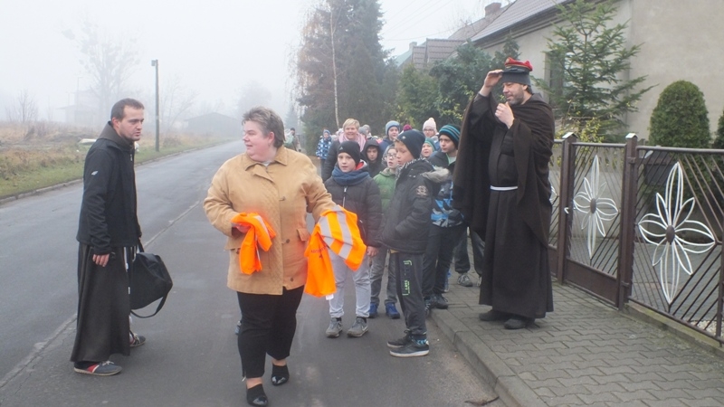Co łączy św. Katarzynę ze św. Andrzejem? – na to pytani szukały odpowiedzi dzieci, które przybyły na spotkanie do salki św. Klary w sobotę 26 listopada. W tym dniu kościół wspominał św. Katarzynę, patronkę kolejarzy. Po prezentacji, która przybliżyła dzieciom kalendarz roku liturgicznego, a także krótką historię życia św. Andrzeja i św. Katarzyny wszyscy wraz z ojcem Masseo i ojcem proboszczem udali się na wycieczkę na kolej. Tam na dzieci czekali kolejarze, którzy opowiedzieli o swojej pracy, zwrócili uwagę na znaki, które znajdują się przy torach: semafory, zwrotnice, sygnalizację świetlną oraz już w budynku nastawni wprowadzili je w tajniki skomplikowanych przycisków, dźwigni i korb. Nie da się ukryć, że najbardziej zainteresowanym i zafascynowanym tym miejscem był ojciec Ksawery, który osobiście przekładał zwrotnicę i zadawał najwięcej pytań dotyczących migających światełek. W związku z tym, że w sobotę kolejarze obchodzili swoje święto, dzieci życzyły im dużo zdrowia i sił w niełatwej i bardzo odpowiedzialnej pracy oraz opieki ich patronki św. Katarzyny. Po wizycie na kolei przyszedł czas na niespodziankę- desery w Lodziarni pana Hałasa. Mimo to, że dzieci było dużo, a miejsca w lokalu mało, wszyscy z uśmiechem i apetytem zjadali lody z ,,górą” pysznej bitej śmietanki. Po długim spacerze odrobina kalorii nikomu nie zaszkodziła. A co łączy św. Katarzynę ze św. Andrzejem? – na to pytanie odpowie już każde dziecko, które było na spotkaniu- oczywiście kolej ( znak św. Andrzeja i św. Katarzyna-patronka kolejarzy).
