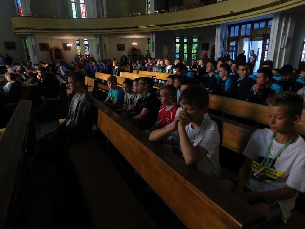 Po Eucharystii udaliśmy się na halę, gdzie nasza reprezentacja rywalizowała w grupie C. Warto tutaj wspomnieć, iż w sumie rozgrywki odbywały się na dwunastu halach. Wszystkie mecze w grupie nasi ministranci wygrali, tym samym awansowali z pierwszego miejsca do fazy „Finału A”, czyli głównej fazy finałowej. Ministranci naszej Parafii w swojej kategorii zdobyli najwięcej bramek. Natomiast szczególne wyróżnienie przez sędziego zdobył nasz bramkarz.
