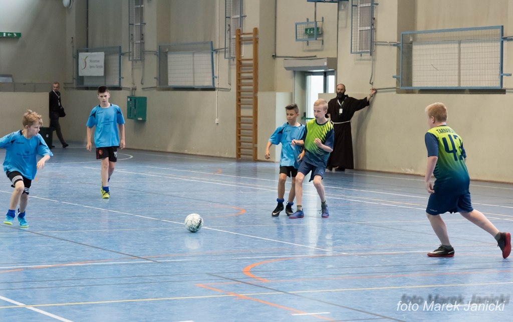 Po Eucharystii udaliśmy się na halę, gdzie nasza reprezentacja rywalizowała w grupie C. Warto tutaj wspomnieć, iż w sumie rozgrywki odbywały się na dwunastu halach. Wszystkie mecze w grupie nasi ministranci wygrali, tym samym awansowali z pierwszego miejsca do fazy „Finału A”, czyli głównej fazy finałowej. Ministranci naszej Parafii w swojej kategorii zdobyli najwięcej bramek. Natomiast szczególne wyróżnienie przez sędziego zdobył nasz bramkarz.
