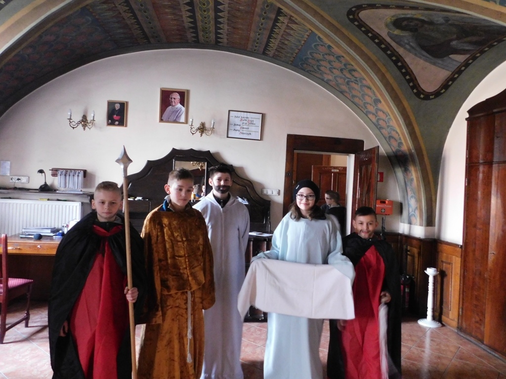 W poniedziałek 12 lutego, wczesnym rankiem schola liturgiczna i ministranci z opiekunami udali się na wycieczkę do Berlina i „Tropical Islands”. Wyjazd rozpoczęliśmy od wspólnej Eucharystii w naszym kościele, a następnie autokarem wyruszyliśmy w stronę naszych zachodnich sąsiadów. W Berlinie pan przewodnik z biura podróżny przedstawił nam najważniejsze dzieje stolicy Niemiec. Na tropikalnej wyspie uczestnicy wycieczki spędzili wspaniały czas zabawy i mogli poczuć się w środku zimy jak na letnich wakacjach. Nasz wyjazd trwał dwa dni, a jedną z atrakcji był nocleg na plaży w namiocie. Jako młodzi chrześcijanie nie zapomnieliśmy o wspólnej modlitwie na początek i zakończenie dnia. W czwartek 15.02, w Hali Środowiskowo – Sportowej w Kobylinie już po raz szósty odbył się organizowany przez naszą parafię Turniej Piłki Halowej Ministrantów. Ojciec proboszcz Ksawery rozpoczął piłkarskie spotkanie modlitwą i udzielił wszystkim uczestnikom Bożego błogosławieństwa. Nasi ministranci, którzy wystawili dwa składy (w kategorii szkoła podstawowa i 7 klasa + gimnazjum ) zdobyli pierwsze i trzecie miejsce. Podczas trwania turnieju ministranci mieli okazję zawiązać nowe znajomości z kolegami z innych parafii. Dzięki hojności naszych parafian zwycięscy dostali drobne upominki. W drugim tygodniu ferii, środę 21.02 na terenie ogrodu klasztornego odbyła się niezwykła droga krzyżowa z udziałem dzieci, połączona z inscenizacją Męki Pańskiej. Dzieci naszej parafii wcielili się w role biblijnych postaci, odgrywając w konwencji historycznej wszystkie XIV stacji drogi krzyżowej. Podczas nabożeństwa można było posłuchać muzyki stworzonej dla poszczególnych stacji. Przy stacji XII dzieci otrzymały serca z napisem „Tak Bóg umiłował świat, że syna swego Jednorodzonego dał, aby każdy kto w niego wierzy życie wieczne miał”. Słowa te przypomniały naszym najmłodszym o wielkiej miłości Pana Jezusa. Na zakończenie wszyscy uczestnicy zostali zaproszeni do salki św. Klary na fragment filmu „Opowieści z Narmi”, przedstawiający scenę ofiary Aslana, która obrazuje ofiarę Syna Bożego.