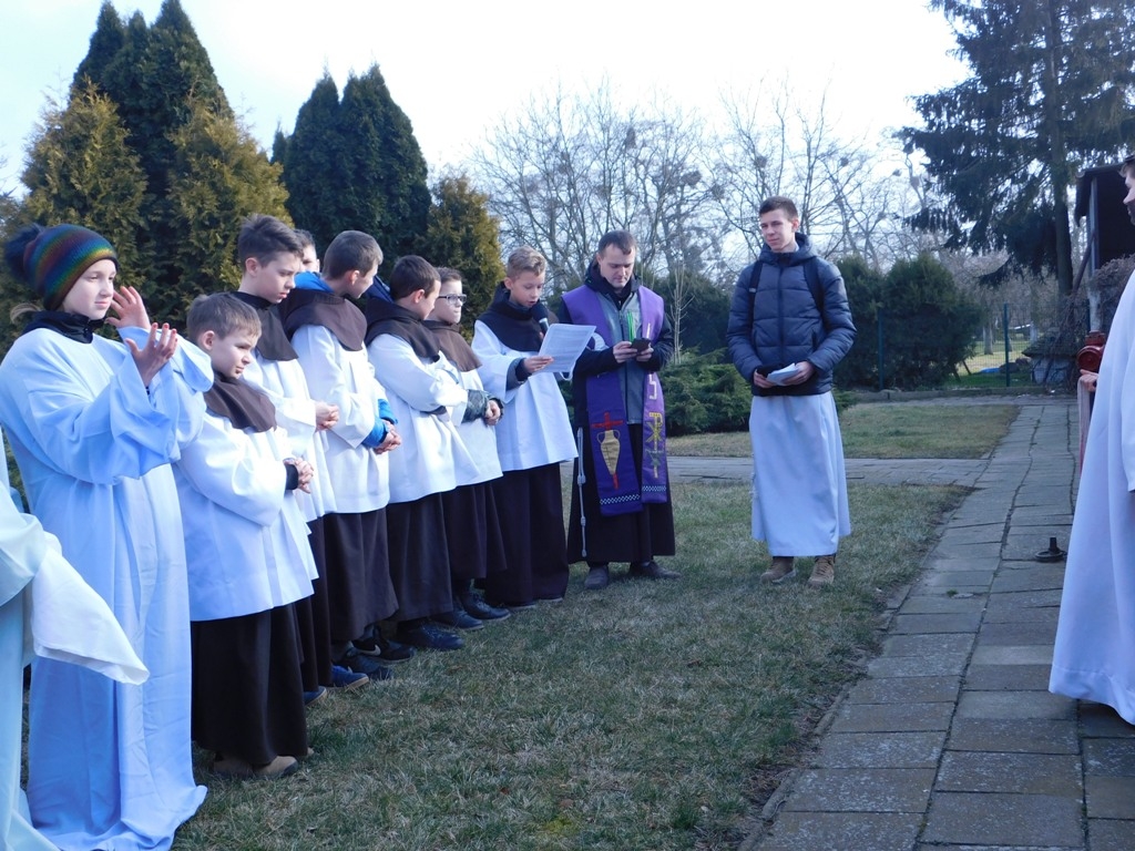 W poniedziałek 12 lutego, wczesnym rankiem schola liturgiczna i ministranci z opiekunami udali się na wycieczkę do Berlina i „Tropical Islands”. Wyjazd rozpoczęliśmy od wspólnej Eucharystii w naszym kościele, a następnie autokarem wyruszyliśmy w stronę naszych zachodnich sąsiadów. W Berlinie pan przewodnik z biura podróżny przedstawił nam najważniejsze dzieje stolicy Niemiec. Na tropikalnej wyspie uczestnicy wycieczki spędzili wspaniały czas zabawy i mogli poczuć się w środku zimy jak na letnich wakacjach. Nasz wyjazd trwał dwa dni, a jedną z atrakcji był nocleg na plaży w namiocie. Jako młodzi chrześcijanie nie zapomnieliśmy o wspólnej modlitwie na początek i zakończenie dnia. W czwartek 15.02, w Hali Środowiskowo – Sportowej w Kobylinie już po raz szósty odbył się organizowany przez naszą parafię Turniej Piłki Halowej Ministrantów. Ojciec proboszcz Ksawery rozpoczął piłkarskie spotkanie modlitwą i udzielił wszystkim uczestnikom Bożego błogosławieństwa. Nasi ministranci, którzy wystawili dwa składy (w kategorii szkoła podstawowa i 7 klasa + gimnazjum ) zdobyli pierwsze i trzecie miejsce. Podczas trwania turnieju ministranci mieli okazję zawiązać nowe znajomości z kolegami z innych parafii. Dzięki hojności naszych parafian zwycięscy dostali drobne upominki. W drugim tygodniu ferii, środę 21.02 na terenie ogrodu klasztornego odbyła się niezwykła droga krzyżowa z udziałem dzieci, połączona z inscenizacją Męki Pańskiej. Dzieci naszej parafii wcielili się w role biblijnych postaci, odgrywając w konwencji historycznej wszystkie XIV stacji drogi krzyżowej. Podczas nabożeństwa można było posłuchać muzyki stworzonej dla poszczególnych stacji. Przy stacji XII dzieci otrzymały serca z napisem „Tak Bóg umiłował świat, że syna swego Jednorodzonego dał, aby każdy kto w niego wierzy życie wieczne miał”. Słowa te przypomniały naszym najmłodszym o wielkiej miłości Pana Jezusa. Na zakończenie wszyscy uczestnicy zostali zaproszeni do salki św. Klary na fragment filmu „Opowieści z Narmi”, przedstawiający scenę ofiary Aslana, która obrazuje ofiarę Syna Bożego.