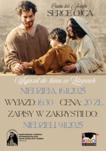 W niedzielę 16 listopada organizowany jest wyjazd na film „Serce Ojca”do kina w Zdunach – film o św. Józefie. Zapisy do przyszłej niedzieli w zakrystii.