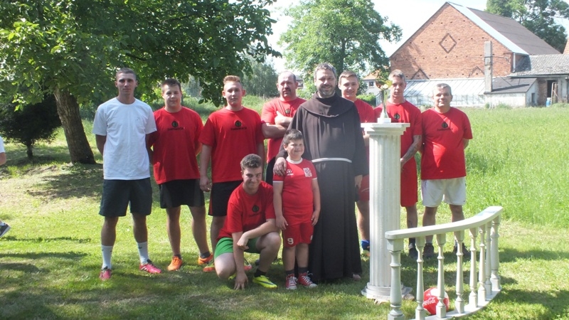 W sobotę, 11 czerwca, w ogrodzie klasztornym, na Franc Arenie odbył się II Turniej Piłki Nożnej o Puchar Proboszcza. W rozgrywkach wzięło udział 6 drużyn: Ojcowie scholii i ministrantów, Ministranci, Domowy Kościół, drużyna z Rzemiechowa, Wachowiak TEAM i gospodarze imprezy- Franciszkanie. Turniej rozpoczął się od krótkiej modlitwy, a następnie prezentacji drużyn, której towarzyszyła jak w zeszłym roku muzyka Champions league. Ta muzyka sprawiła, że wszyscy poczuli się jak na mistrzostwach Europy w piłkę nożną. Zanim rozpoczęły się rozgrywki wylosowano i ustalono dwie grupy: A i B, w których każdy grał z każdym. Z grup wyszły do rozgrywek finałowych dwie drużyny. Z grupy A : Ministranci i Domowy Kościół, z grupy B: Wachowiak TEAM i Rzemiechów. W pierwszym półfinale zagrali Ministranci z Rzemiechowem. Ten mecz wygrali reprezentanci z Rzemiechowa i tym samym przeszli do finału. W drugim półfinale Wachowiak TEAM pokonał Domowy Kościół i również trafił do finału. Tak więc mecz o III miejsce rozegrały: drużyna Domowego Kościoła i Ministranci. Tym razem lepszy okazał się Domowy Kościół, który podobnie jak w zeszłym roku zdobył miejsce na podium. Mecz o Puchar Turnieju wzbudził wiele emocji. Grali w nim zeszłoroczni finaliści Wachowiak Team i debiutanci. Wzorowa postawa kibiców, ich liczna obecność i głośny doping sprawiły, że zawodnicy czuli się jak na prawdziwym turnieju piłkarskim. Po zaciętej, wyrównanej i efektownej grze wygrał Wachowiak TEAM. Po meczu odbyła się ceremonia wręczenia pucharu zwycięskiej drużynie, a dokonał tego ojciec proboszcz. W tle słychać było znowu muzykę Champions league, a z butelki tryskał szampan. Oprócz pucharu zwycięzcy otrzymali także piłkę z podpisem Roberta Lewandowskiego, którą zdobywcy pucharu wręczyli w ramach podziękowania gospodarzom – Franciszkanom (być może dlatego, aby jeszcze potrenowali, bo w tym roku nie udało się im wyjść z grupy, cóż… i tak bywa 🙂 za rok będzie lepiej ) Turniej został zorganizowany po raz drugi i cieszył się sporym zainteresowaniem parafian. Pogoda tym razem dopisała, czas umilała wszystkim muzyka i smak kawy . Można było zjeść kawałek dobrego ciasta lub ostudzić emocje czymś zimnym. Ale przede wszystkim można było rodzinnie, na sportowo, w miłej atmosferze, w tonącym zieleniom ogrodzie spędzić sobotnie popołudnie. A nad wszystkim czuwała Matka Boża przy Żłóbku i św. Franciszek. Dziękujemy wszystkim zaangażowanym w organizację Turnieju. Ojcu Ksaweremu za ufundowanie pucharu i profesjonalny komentarz. Dziękujemy zawodnikom za udział i dostarczenie nam wspaniałych emocji, kibicom za przybycie i wspieranie swoich ulubieńców. Dziękujemy także sędziemu panu Dominikowi oraz Zespołowi Charytatywnemu. Wszystkim Bóg zapłać.