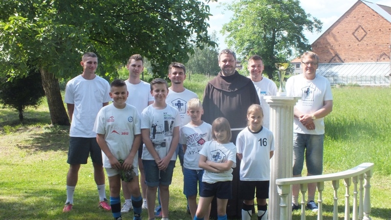 W sobotę, 11 czerwca, w ogrodzie klasztornym, na Franc Arenie odbył się II Turniej Piłki Nożnej o Puchar Proboszcza. W rozgrywkach wzięło udział 6 drużyn: Ojcowie scholii i ministrantów, Ministranci, Domowy Kościół, drużyna z Rzemiechowa, Wachowiak TEAM i gospodarze imprezy- Franciszkanie. Turniej rozpoczął się od krótkiej modlitwy, a następnie prezentacji drużyn, której towarzyszyła jak w zeszłym roku muzyka Champions league. Ta muzyka sprawiła, że wszyscy poczuli się jak na mistrzostwach Europy w piłkę nożną. Zanim rozpoczęły się rozgrywki wylosowano i ustalono dwie grupy: A i B, w których każdy grał z każdym. Z grup wyszły do rozgrywek finałowych dwie drużyny. Z grupy A : Ministranci i Domowy Kościół, z grupy B: Wachowiak TEAM i Rzemiechów. W pierwszym półfinale zagrali Ministranci z Rzemiechowem. Ten mecz wygrali reprezentanci z Rzemiechowa i tym samym przeszli do finału. W drugim półfinale Wachowiak TEAM pokonał Domowy Kościół i również trafił do finału. Tak więc mecz o III miejsce rozegrały: drużyna Domowego Kościoła i Ministranci. Tym razem lepszy okazał się Domowy Kościół, który podobnie jak w zeszłym roku zdobył miejsce na podium. Mecz o Puchar Turnieju wzbudził wiele emocji. Grali w nim zeszłoroczni finaliści Wachowiak Team i debiutanci. Wzorowa postawa kibiców, ich liczna obecność i głośny doping sprawiły, że zawodnicy czuli się jak na prawdziwym turnieju piłkarskim. Po zaciętej, wyrównanej i efektownej grze wygrał Wachowiak TEAM. Po meczu odbyła się ceremonia wręczenia pucharu zwycięskiej drużynie, a dokonał tego ojciec proboszcz. W tle słychać było znowu muzykę Champions league, a z butelki tryskał szampan. Oprócz pucharu zwycięzcy otrzymali także piłkę z podpisem Roberta Lewandowskiego, którą zdobywcy pucharu wręczyli w ramach podziękowania gospodarzom – Franciszkanom (być może dlatego, aby jeszcze potrenowali, bo w tym roku nie udało się im wyjść z grupy, cóż… i tak bywa 🙂 za rok będzie lepiej ) Turniej został zorganizowany po raz drugi i cieszył się sporym zainteresowaniem parafian. Pogoda tym razem dopisała, czas umilała wszystkim muzyka i smak kawy . Można było zjeść kawałek dobrego ciasta lub ostudzić emocje czymś zimnym. Ale przede wszystkim można było rodzinnie, na sportowo, w miłej atmosferze, w tonącym zieleniom ogrodzie spędzić sobotnie popołudnie. A nad wszystkim czuwała Matka Boża przy Żłóbku i św. Franciszek. Dziękujemy wszystkim zaangażowanym w organizację Turnieju. Ojcu Ksaweremu za ufundowanie pucharu i profesjonalny komentarz. Dziękujemy zawodnikom za udział i dostarczenie nam wspaniałych emocji, kibicom za przybycie i wspieranie swoich ulubieńców. Dziękujemy także sędziemu panu Dominikowi oraz Zespołowi Charytatywnemu. Wszystkim Bóg zapłać.