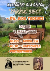 W piątek zapraszamy wszystkie dzieci na Mszę św. o godz. 16.00. Pół godziny wcześniej – spowiedź dla dzieci. Po Mszy św. Katecheza „Zarzuć sieci”,w tym miesiącu poznamy św. Judę Tadeusza – po katechezie słodki poczęstunek.