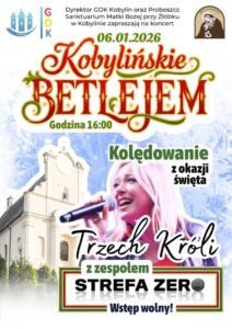 Kobylińskie Betlejem Już dziś zapraszamy, wspólnie z Gminnym Ośrodkiem Kultury, na koncertkolęd w wykonaniu zespołu „Strefa Zero” — 6 stycznia o godz. 16:00 Zespół „Swojacy” ŻYCZENIA NOWOROCZNE