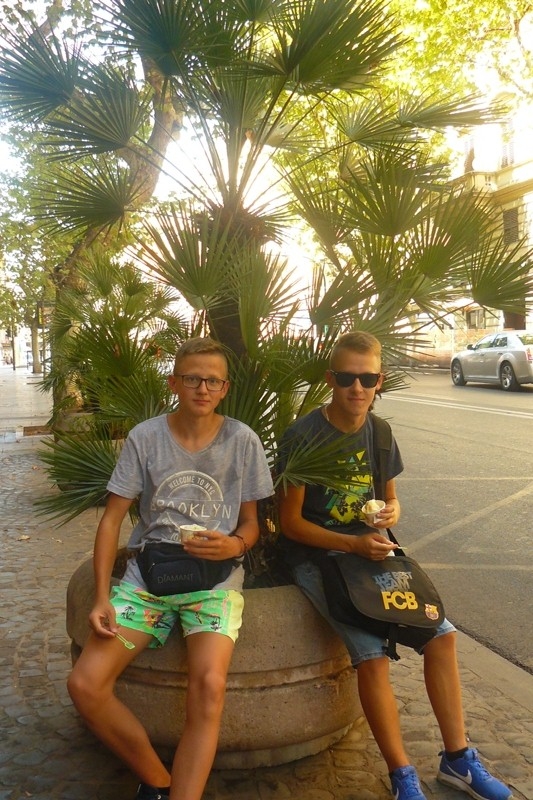 Zobaczyliśmy Bazylikę św. Jana Chrzciciela na Lateranie, która dawniej była miejscem rezydencji kolejnych papieży. Jest to jedna z tzw. Bazylik Większych. Tego dnia po krótkim odpoczynku pojechaliśmy nad Morze Tyrreńskie. W drodze powrotnej zatrzymaliśmy się przy Coloseum, które zrobiło na nas ogromne wrażenie. Wtorek był dla nas dniem szczególnym. Udaliśmy się na Watykan, na co czekaliśmy z ogromną niecierpliwością. W oknie ujrzeliśmy naszego Papieża Franciszka, zwiedzaliśmy Bazylikę Św. Piotra i uczestniczyliśmy we Mszy św. z Uroczystości Wniebowzięcia Najświętszej Maryi Panny. Oczywiście pomodliliśmy się nad grobem św. Jana Pawła II. Miejsce to napełniło nas wzruszeniem i zadumą. Wieczorem udaliśmy się na spacer po Rzymie, zobaczyliśmy Schody Hiszpańskie oraz barokową fontannę Di Trevi. Na zakończenie, po dniu pełnym wrażeń, udaliśmy się na pizzę, a w drodze powrotnej zwiedzaliśmy ruiny starego Miasta. W środę pojechaliśmy pociągiem do Asyżu, miasta świętych Franciszka i Klary. Zwiedziliśmy Bazylikę Najświętszej Maryi Panny od Aniołów, następnie niezapomniane Bazyliki św. Franciszka i św. Klary. Asyż to urzekające miasteczko, pełne zieleni, pięknych starych uliczek, miasteczko w którym można się zakochać. W ostatni dzień naszej podróży odwiedziliśmy Bazylikę Matki Bożej Większej (Matki Bożej Śnieżnej i co najważniejsze – od czasów, gdy znalazły się w niej relikwie żłóbka, Bazylika ta nosi także tytuł Matki Bożej przy Żłobku). Nie sposób było jej nie zwiedzić i oczywiście pomodlić się w intencji naszej parafii. Zwiedziliśmy także zamek św. Anioła, Plac Piazza Navonna, Capitol i wiele miejsc, których nie da się zapomnieć. Codziennie uczestniczyliśmy też w Mszy Świętej, odprawianej przez naszych Ojców Ksawerego i Masseo. Szczęśliwi wróciliśmy do Polski. Dla niektórych z nas była to podróż życia, niezapomnianych wrażeń, zadumy. Nie da się opisać wszystkiego co zobaczyliśmy i przeżyliśmy. Uczestniczka