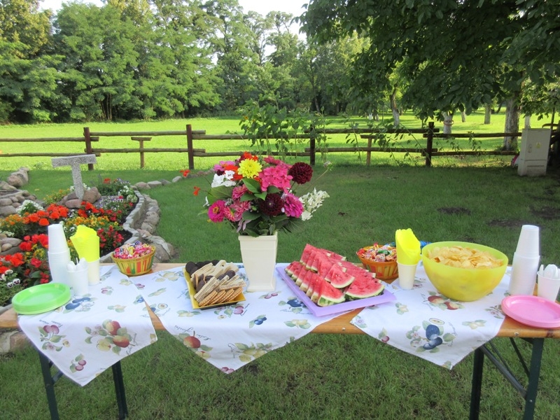 Po powrocie i rozstrzygnięciu zabawy, wszyscy udali się do salki św. Klary gdzie obejrzeli krótką bajkę przedstawiającą najważniejsze fakty z życia Świętej. Dzieci musiały z uwagą oglądać filmik, ponieważ informacje o życiu św. Klary potrzebne były w następnych zadaniach. Po projekcji przyszedł czas na kolację, na pyszną grillowana kiełbaskę. Gdy dzieci najadły się i nakarmiły koty wzięły udział w quizie o życiu św. Klary. Uczestnicy zabawili się w wędkarzy i z małego basenu musieli w ciągu 30 sekund wyłowić rybkę z pytaniem dotyczącym głównej bohaterki spotkania. Drużyny były dobrze przygotowane i miały dużą wiedzę na temat życia św. Klary. Gdy w ogrodzie zapadł zmierzch, a w klasztorze zapanowała głęboka cisza wszyscy przeszli do klasztornego refektarza na zajęcia plastyczne. Dzieci zdobiły świece. I to nie był przypadek, świeca bowiem daje światło, rozjaśnia otoczenie, w świetle dostrzegamy wiele rzeczy, często widzimy je w innym wymiarze. Imię Klara oznacza blask, jasność, światło, które ma przypominać, że i my jako chrześcijanie mamy być światłością, podobnie jak była nią św. Klara. Ona jest jasnym przykładem jak zdecydowanie iść za Jezusem, jasnym świadectwem oddania i miłości do Boga dla ludzi żyjących w dzisiejszym świecie. W nocy ok 24.00 ogłoszono pobudkę, wszyscy uczestnicy spotkania z zapalonymi świecami przeszli ciemnymi klasztornymi korytarzami do kościoła. Na ołtarzu św. Franciszka została przygotowana dekoracja ku czci św. Klary. Dzieci odmówiły wspólnie modlitwę o łaskę stania się światłem dla innych i zostawiły ozdobione przez siebie świece przy wizerunku św. Klary. Po nocy pełnej wrażeń nastał słoneczny poranek. Choć niektórym ciężko było wstać, wszyscy wzięli udział w Eucharystii, którą szczególnie umiłowała św. Klara. Ostatnim punktem spotkania było świąteczne śniadanie w klasztornym ogrodzie, po którym podsumowano wspólnie spędzony czas. Bardzo serdecznie dziękujemy Parafialnemu Zespołowi Charytatywnemu za przygotowanie i poprowadzenie tego szczególnego spotkania. Niech św. Klara wyprasza nam wszystkim potrzebne łaski u Pana.