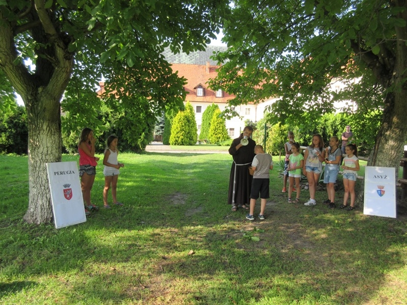 W czwartek 10 sierpnia o godz. 17.00 w ogrodzie klasztornym rozpoczęło się nocne spotkanie ze św. Klarą w Franciszkańskiej Wiosce. Uczestnicy spotkania podzieleni zostali na dwie drużyny. Jedna grupa rywalizowała pod herbem miasta Asyż, druga reprezentowała Perugie. Obie drużyny z opiekunami wyruszyły w różne zakątki Kobylina na podchody, które miały zintegrować grupę i przygotować do dalszej części spotkania.