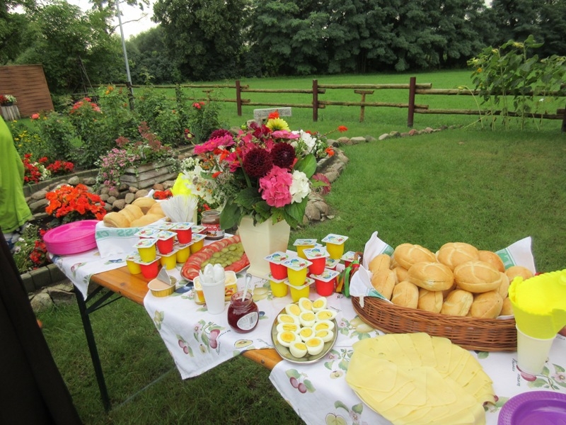 Po powrocie i rozstrzygnięciu zabawy, wszyscy udali się do salki św. Klary gdzie obejrzeli krótką bajkę przedstawiającą najważniejsze fakty z życia Świętej. Dzieci musiały z uwagą oglądać filmik, ponieważ informacje o życiu św. Klary potrzebne były w następnych zadaniach. Po projekcji przyszedł czas na kolację, na pyszną grillowana kiełbaskę. Gdy dzieci najadły się i nakarmiły koty wzięły udział w quizie o życiu św. Klary. Uczestnicy zabawili się w wędkarzy i z małego basenu musieli w ciągu 30 sekund wyłowić rybkę z pytaniem dotyczącym głównej bohaterki spotkania. Drużyny były dobrze przygotowane i miały dużą wiedzę na temat życia św. Klary. Gdy w ogrodzie zapadł zmierzch, a w klasztorze zapanowała głęboka cisza wszyscy przeszli do klasztornego refektarza na zajęcia plastyczne. Dzieci zdobiły świece. I to nie był przypadek, świeca bowiem daje światło, rozjaśnia otoczenie, w świetle dostrzegamy wiele rzeczy, często widzimy je w innym wymiarze. Imię Klara oznacza blask, jasność, światło, które ma przypominać, że i my jako chrześcijanie mamy być światłością, podobnie jak była nią św. Klara. Ona jest jasnym przykładem jak zdecydowanie iść za Jezusem, jasnym świadectwem oddania i miłości do Boga dla ludzi żyjących w dzisiejszym świecie. W nocy ok 24.00 ogłoszono pobudkę, wszyscy uczestnicy spotkania z zapalonymi świecami przeszli ciemnymi klasztornymi korytarzami do kościoła. Na ołtarzu św. Franciszka została przygotowana dekoracja ku czci św. Klary. Dzieci odmówiły wspólnie modlitwę o łaskę stania się światłem dla innych i zostawiły ozdobione przez siebie świece przy wizerunku św. Klary. Po nocy pełnej wrażeń nastał słoneczny poranek. Choć niektórym ciężko było wstać, wszyscy wzięli udział w Eucharystii, którą szczególnie umiłowała św. Klara. Ostatnim punktem spotkania było świąteczne śniadanie w klasztornym ogrodzie, po którym podsumowano wspólnie spędzony czas. Bardzo serdecznie dziękujemy Parafialnemu Zespołowi Charytatywnemu za przygotowanie i poprowadzenie tego szczególnego spotkania. Niech św. Klara wyprasza nam wszystkim potrzebne łaski u Pana.