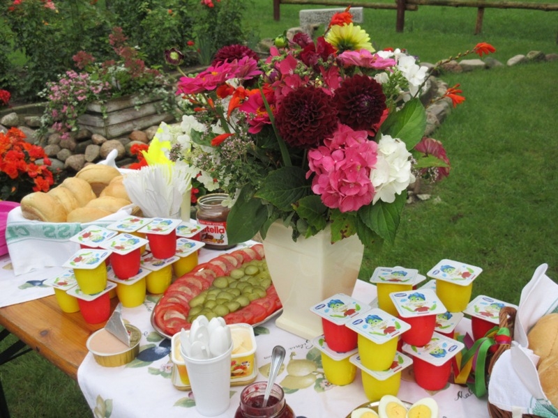 Po powrocie i rozstrzygnięciu zabawy, wszyscy udali się do salki św. Klary gdzie obejrzeli krótką bajkę przedstawiającą najważniejsze fakty z życia Świętej. Dzieci musiały z uwagą oglądać filmik, ponieważ informacje o życiu św. Klary potrzebne były w następnych zadaniach. Po projekcji przyszedł czas na kolację, na pyszną grillowana kiełbaskę. Gdy dzieci najadły się i nakarmiły koty wzięły udział w quizie o życiu św. Klary. Uczestnicy zabawili się w wędkarzy i z małego basenu musieli w ciągu 30 sekund wyłowić rybkę z pytaniem dotyczącym głównej bohaterki spotkania. Drużyny były dobrze przygotowane i miały dużą wiedzę na temat życia św. Klary. Gdy w ogrodzie zapadł zmierzch, a w klasztorze zapanowała głęboka cisza wszyscy przeszli do klasztornego refektarza na zajęcia plastyczne. Dzieci zdobiły świece. I to nie był przypadek, świeca bowiem daje światło, rozjaśnia otoczenie, w świetle dostrzegamy wiele rzeczy, często widzimy je w innym wymiarze. Imię Klara oznacza blask, jasność, światło, które ma przypominać, że i my jako chrześcijanie mamy być światłością, podobnie jak była nią św. Klara. Ona jest jasnym przykładem jak zdecydowanie iść za Jezusem, jasnym świadectwem oddania i miłości do Boga dla ludzi żyjących w dzisiejszym świecie. W nocy ok 24.00 ogłoszono pobudkę, wszyscy uczestnicy spotkania z zapalonymi świecami przeszli ciemnymi klasztornymi korytarzami do kościoła. Na ołtarzu św. Franciszka została przygotowana dekoracja ku czci św. Klary. Dzieci odmówiły wspólnie modlitwę o łaskę stania się światłem dla innych i zostawiły ozdobione przez siebie świece przy wizerunku św. Klary. Po nocy pełnej wrażeń nastał słoneczny poranek. Choć niektórym ciężko było wstać, wszyscy wzięli udział w Eucharystii, którą szczególnie umiłowała św. Klara. Ostatnim punktem spotkania było świąteczne śniadanie w klasztornym ogrodzie, po którym podsumowano wspólnie spędzony czas. Bardzo serdecznie dziękujemy Parafialnemu Zespołowi Charytatywnemu za przygotowanie i poprowadzenie tego szczególnego spotkania. Niech św. Klara wyprasza nam wszystkim potrzebne łaski u Pana.
