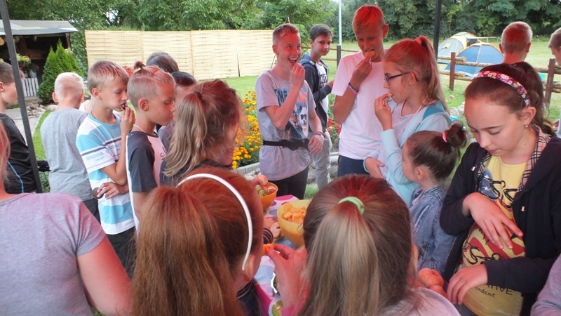 Spotkanie rozpoczęło się w środę o godz. 17 tej krótkim filmem o Św. Klarze a następnie wszyscy udali się do ogrodu gdzie Ojciec Masseo wraz z bratem Jozafatem czekali na swoich podopiecznych w przygotowanej kapliczce. Po słodkim podwieczorku i zakwaterowaniu w namiotach, dwie grupy udały się w teren aby odszukać ukryte koperty z zadaniami, które trzeba było wykonać. Po godzinie wszyscy wrócili do ogrodu, gdzie zostali rozliczeni z poleceń, które mieli wykonać. Gdy nadszedł wieczór zjedliśmy wspólnie kolację, grillowaną kiełbaskę, a potem wzięliśmy udział w turnieju wiedzy o Św. Klarze. Znajomość Świętej okazała się imponująca. Dzieci znają wiele faktów z życia Klary dzięki filmom, które obejrzeli i opowiadaniom Ojca Masseo. Po wieczornym apelu wszyscy udali się na spoczynek do namiotów. Gdy nadeszła północ, a chyba nikt jeszcze nie spał, razem z Ojcem Proboszczem, Ojcem Masseo i bratem Jozafatem, przy świetle pochodni i lampionów wyruszyliśmy w cichym marszu, ulicami naszego miasta w poszukiwaniu chleba. Było już po północy, gdy zapukaliśmy do drzwi jednego z domów, gdzie w oknach widać było jeszcze światło. Gdy trochę zdziwiony gospodarz otworzył nam drzwi poprosiliśmy go o chleb i wielka była nasza radość, gdy otrzymaliśmy świeży bochenek. Gorąco podziękowaliśmy i przeprosiliśmy za najście a następnie wróciliśmy do namiotów, aby tym razem już naprawdę pójść spać. Pobudka rano nie była już tak przyjemna, noc dla niektórych była bardzo krótka. Trochę niewyspani ale bardzo radośni, udaliśmy się do kościoła aby uczestniczyć we Mszy św. a następnie zjedliśmy pyszne śniadanie, po którym pozostało nam tylko zwinąć namioty i czekać do przyszłego roku, aby znowu wspólnie z Ojcami wspominać Św. Klarę.