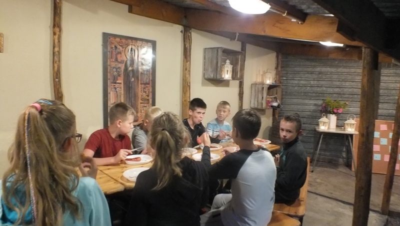 Spotkanie rozpoczęło się w środę o godz. 17 tej krótkim filmem o Św. Klarze a następnie wszyscy udali się do ogrodu gdzie Ojciec Masseo wraz z bratem Jozafatem czekali na swoich podopiecznych w przygotowanej kapliczce. Po słodkim podwieczorku i zakwaterowaniu w namiotach, dwie grupy udały się w teren aby odszukać ukryte koperty z zadaniami, które trzeba było wykonać. Po godzinie wszyscy wrócili do ogrodu, gdzie zostali rozliczeni z poleceń, które mieli wykonać. Gdy nadszedł wieczór zjedliśmy wspólnie kolację, grillowaną kiełbaskę, a potem wzięliśmy udział w turnieju wiedzy o Św. Klarze. Znajomość Świętej okazała się imponująca. Dzieci znają wiele faktów z życia Klary dzięki filmom, które obejrzeli i opowiadaniom Ojca Masseo. Po wieczornym apelu wszyscy udali się na spoczynek do namiotów. Gdy nadeszła północ, a chyba nikt jeszcze nie spał, razem z Ojcem Proboszczem, Ojcem Masseo i bratem Jozafatem, przy świetle pochodni i lampionów wyruszyliśmy w cichym marszu, ulicami naszego miasta w poszukiwaniu chleba. Było już po północy, gdy zapukaliśmy do drzwi jednego z domów, gdzie w oknach widać było jeszcze światło. Gdy trochę zdziwiony gospodarz otworzył nam drzwi poprosiliśmy go o chleb i wielka była nasza radość, gdy otrzymaliśmy świeży bochenek. Gorąco podziękowaliśmy i przeprosiliśmy za najście a następnie wróciliśmy do namiotów, aby tym razem już naprawdę pójść spać. Pobudka rano nie była już tak przyjemna, noc dla niektórych była bardzo krótka. Trochę niewyspani ale bardzo radośni, udaliśmy się do kościoła aby uczestniczyć we Mszy św. a następnie zjedliśmy pyszne śniadanie, po którym pozostało nam tylko zwinąć namioty i czekać do przyszłego roku, aby znowu wspólnie z Ojcami wspominać Św. Klarę.