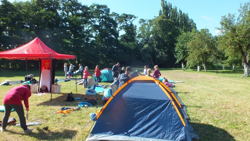 Spotkanie rozpoczęło się w środę o godz. 17 tej krótkim filmem o Św. Klarze a następnie wszyscy udali się do ogrodu gdzie Ojciec Masseo wraz z bratem Jozafatem czekali na swoich podopiecznych w przygotowanej kapliczce. Po słodkim podwieczorku i zakwaterowaniu w namiotach, dwie grupy udały się w teren aby odszukać ukryte koperty z zadaniami, które trzeba było wykonać. Po godzinie wszyscy wrócili do ogrodu, gdzie zostali rozliczeni z poleceń, które mieli wykonać. Gdy nadszedł wieczór zjedliśmy wspólnie kolację, grillowaną kiełbaskę, a potem wzięliśmy udział w turnieju wiedzy o Św. Klarze. Znajomość Świętej okazała się imponująca. Dzieci znają wiele faktów z życia Klary dzięki filmom, które obejrzeli i opowiadaniom Ojca Masseo. Po wieczornym apelu wszyscy udali się na spoczynek do namiotów. Gdy nadeszła północ, a chyba nikt jeszcze nie spał, razem z Ojcem Proboszczem, Ojcem Masseo i bratem Jozafatem, przy świetle pochodni i lampionów wyruszyliśmy w cichym marszu, ulicami naszego miasta w poszukiwaniu chleba. Było już po północy, gdy zapukaliśmy do drzwi jednego z domów, gdzie w oknach widać było jeszcze światło. Gdy trochę zdziwiony gospodarz otworzył nam drzwi poprosiliśmy go o chleb i wielka była nasza radość, gdy otrzymaliśmy świeży bochenek. Gorąco podziękowaliśmy i przeprosiliśmy za najście a następnie wróciliśmy do namiotów, aby tym razem już naprawdę pójść spać. Pobudka rano nie była już tak przyjemna, noc dla niektórych była bardzo krótka. Trochę niewyspani ale bardzo radośni, udaliśmy się do kościoła aby uczestniczyć we Mszy św. a następnie zjedliśmy pyszne śniadanie, po którym pozostało nam tylko zwinąć namioty i czekać do przyszłego roku, aby znowu wspólnie z Ojcami wspominać Św. Klarę.