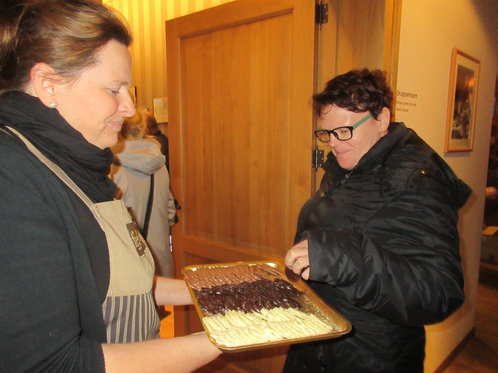 Na uczestników czeka filiżanka gorącej czekolady, dekorowanie własnych tabliczek czekolady oraz film w języku polskim opowiadający historię manufaktury.