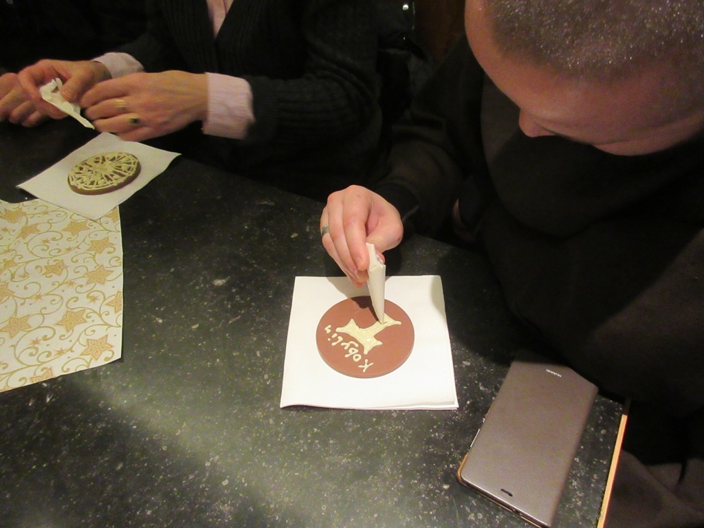 Na uczestników czeka filiżanka gorącej czekolady, dekorowanie własnych tabliczek czekolady oraz film w języku polskim opowiadający historię manufaktury.