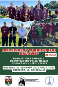 ROZPOCZYNAMY ELIMINACJE Przygotowujemy się na kolejne MISTRZOSTWA POLSKI Liturgicznej Służby Ołtarza o puchar KnC. Pierwszy etap – Dobrzyca. 23.11. godz. 15:00. Zapraszamy do kibicowania. MODLITWA UWIELBIENIA JUBILEUSZOWY RÓŻANIEC