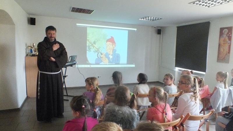 2 października będziemy obchodzić święto Aniołów Stróżów. Z tej okazji w piątek 23 września w salce św. Klary odbyło się ,,Spotkanie z aniołami”. Wszyscy lubimy anioły, choć ich nigdy nie widzieliśmy i pozostaje nam tylko wierzyć, że są, że istnieją naprawdę. Dzieciom kojarzą się przede wszystkim z czymś dobrym i pozytywnym i z pewnością dlatego tak tłumnie przybyły na piątkowe spotkanie. Ojciec Ksawery powitał wszystkich i zaprosił do wspólnej modlitwy, ojciec Masseo opowiedział o aniołach, o tym że każdy ma swojego anioła stróża, który się nami opiekuje i do którego powinniśmy się modlić Dzieci obejrzały krótki film pt.: ,,Mój Anioł Stróż” i w grupach przystąpiły do zajęć plastycznych. Miały przyozdobić szatę swojego Anioła, który miał twarz poszczególnego dziecka . Powstały piękne prace, które ozdobiły boczny ołtarz św. Anny. W czasie spotkania dzieci nauczyły się również wesołej piosenki o aniołach, a także zostały zaproszone na anielski poczęstunek czyli słodkie i białe co nieco. Po wspólnych zajęciach wszyscy przeszli do kaplicy zakonnej i modlili się do anioła stróża ,prosząc go o opiekę.