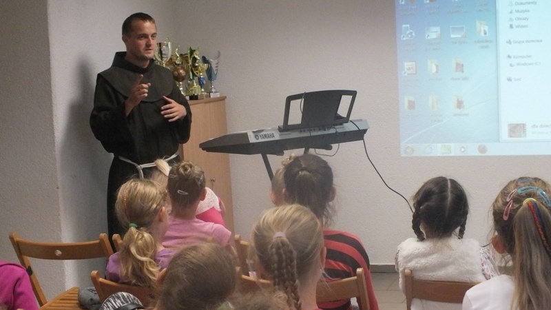 2 października będziemy obchodzić święto Aniołów Stróżów. Z tej okazji w piątek 23 września w salce św. Klary odbyło się ,,Spotkanie z aniołami”. Wszyscy lubimy anioły, choć ich nigdy nie widzieliśmy i pozostaje nam tylko wierzyć, że są, że istnieją naprawdę. Dzieciom kojarzą się przede wszystkim z czymś dobrym i pozytywnym i z pewnością dlatego tak tłumnie przybyły na piątkowe spotkanie. Ojciec Ksawery powitał wszystkich i zaprosił do wspólnej modlitwy, ojciec Masseo opowiedział o aniołach, o tym że każdy ma swojego anioła stróża, który się nami opiekuje i do którego powinniśmy się modlić Dzieci obejrzały krótki film pt.: ,,Mój Anioł Stróż” i w grupach przystąpiły do zajęć plastycznych. Miały przyozdobić szatę swojego Anioła, który miał twarz poszczególnego dziecka . Powstały piękne prace, które ozdobiły boczny ołtarz św. Anny. W czasie spotkania dzieci nauczyły się również wesołej piosenki o aniołach, a także zostały zaproszone na anielski poczęstunek czyli słodkie i białe co nieco. Po wspólnych zajęciach wszyscy przeszli do kaplicy zakonnej i modlili się do anioła stróża ,prosząc go o opiekę.