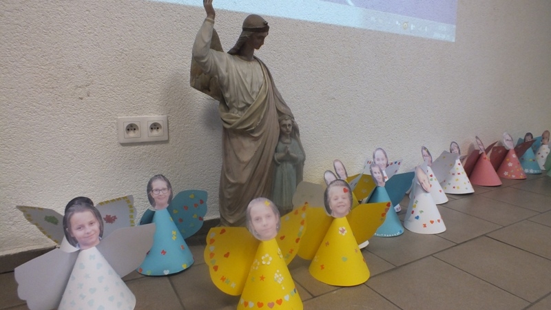 2 października będziemy obchodzić święto Aniołów Stróżów. Z tej okazji w piątek 23 września w salce św. Klary odbyło się ,,Spotkanie z aniołami”. Wszyscy lubimy anioły, choć ich nigdy nie widzieliśmy i pozostaje nam tylko wierzyć, że są, że istnieją naprawdę. Dzieciom kojarzą się przede wszystkim z czymś dobrym i pozytywnym i z pewnością dlatego tak tłumnie przybyły na piątkowe spotkanie. Ojciec Ksawery powitał wszystkich i zaprosił do wspólnej modlitwy, ojciec Masseo opowiedział o aniołach, o tym że każdy ma swojego anioła stróża, który się nami opiekuje i do którego powinniśmy się modlić Dzieci obejrzały krótki film pt.: ,,Mój Anioł Stróż” i w grupach przystąpiły do zajęć plastycznych. Miały przyozdobić szatę swojego Anioła, który miał twarz poszczególnego dziecka . Powstały piękne prace, które ozdobiły boczny ołtarz św. Anny. W czasie spotkania dzieci nauczyły się również wesołej piosenki o aniołach, a także zostały zaproszone na anielski poczęstunek czyli słodkie i białe co nieco. Po wspólnych zajęciach wszyscy przeszli do kaplicy zakonnej i modlili się do anioła stróża ,prosząc go o opiekę.
