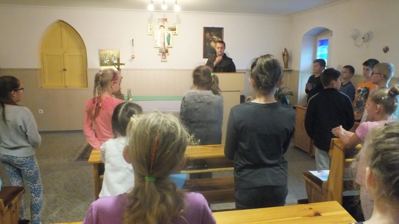 2 października będziemy obchodzić święto Aniołów Stróżów. Z tej okazji w piątek 23 września w salce św. Klary odbyło się ,,Spotkanie z aniołami”. Wszyscy lubimy anioły, choć ich nigdy nie widzieliśmy i pozostaje nam tylko wierzyć, że są, że istnieją naprawdę. Dzieciom kojarzą się przede wszystkim z czymś dobrym i pozytywnym i z pewnością dlatego tak tłumnie przybyły na piątkowe spotkanie. Ojciec Ksawery powitał wszystkich i zaprosił do wspólnej modlitwy, ojciec Masseo opowiedział o aniołach, o tym że każdy ma swojego anioła stróża, który się nami opiekuje i do którego powinniśmy się modlić Dzieci obejrzały krótki film pt.: ,,Mój Anioł Stróż” i w grupach przystąpiły do zajęć plastycznych. Miały przyozdobić szatę swojego Anioła, który miał twarz poszczególnego dziecka . Powstały piękne prace, które ozdobiły boczny ołtarz św. Anny. W czasie spotkania dzieci nauczyły się również wesołej piosenki o aniołach, a także zostały zaproszone na anielski poczęstunek czyli słodkie i białe co nieco. Po wspólnych zajęciach wszyscy przeszli do kaplicy zakonnej i modlili się do anioła stróża ,prosząc go o opiekę.