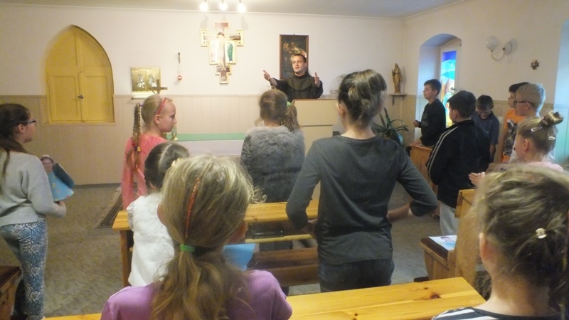 2 października będziemy obchodzić święto Aniołów Stróżów. Z tej okazji w piątek 23 września w salce św. Klary odbyło się ,,Spotkanie z aniołami”. Wszyscy lubimy anioły, choć ich nigdy nie widzieliśmy i pozostaje nam tylko wierzyć, że są, że istnieją naprawdę. Dzieciom kojarzą się przede wszystkim z czymś dobrym i pozytywnym i z pewnością dlatego tak tłumnie przybyły na piątkowe spotkanie. Ojciec Ksawery powitał wszystkich i zaprosił do wspólnej modlitwy, ojciec Masseo opowiedział o aniołach, o tym że każdy ma swojego anioła stróża, który się nami opiekuje i do którego powinniśmy się modlić Dzieci obejrzały krótki film pt.: ,,Mój Anioł Stróż” i w grupach przystąpiły do zajęć plastycznych. Miały przyozdobić szatę swojego Anioła, który miał twarz poszczególnego dziecka . Powstały piękne prace, które ozdobiły boczny ołtarz św. Anny. W czasie spotkania dzieci nauczyły się również wesołej piosenki o aniołach, a także zostały zaproszone na anielski poczęstunek czyli słodkie i białe co nieco. Po wspólnych zajęciach wszyscy przeszli do kaplicy zakonnej i modlili się do anioła stróża ,prosząc go o opiekę.