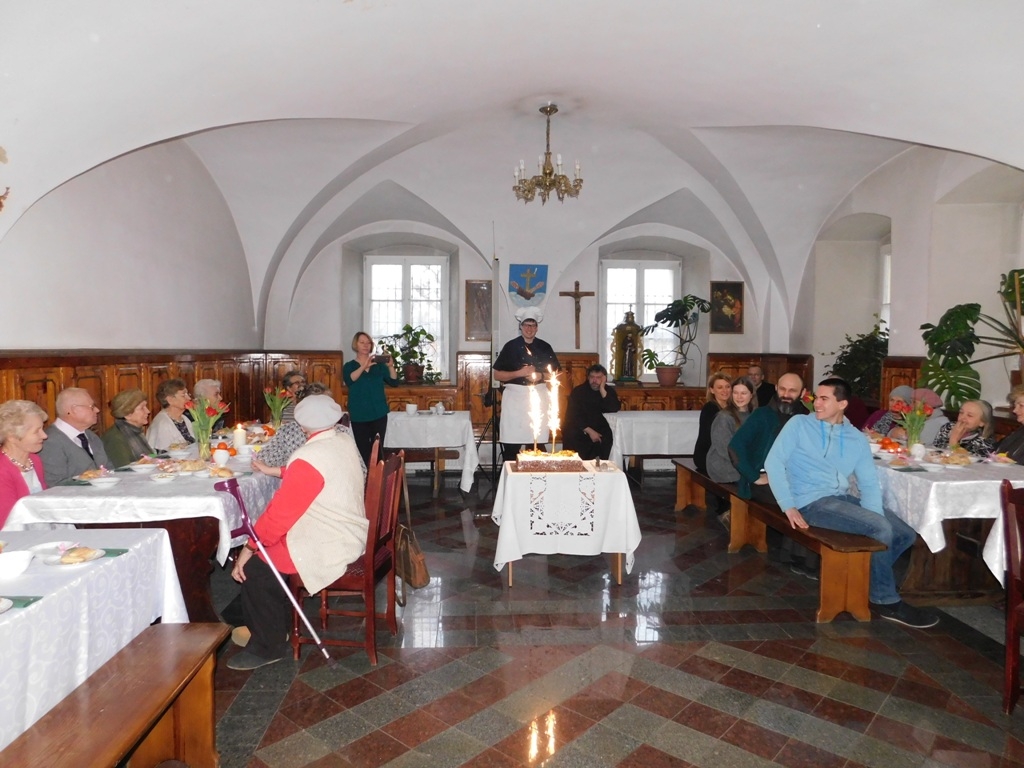 Nasz święty rodak mawiał, że chorzy to wielki dar dla Kościoła. Świadomi tych słów postanowiliśmy po raz kolejny, zaprosić do naszej świątyni chorych, osoby starsze i samotne z naszej parafii. O godz. 15.00 została odprawiona Eucharystia w int. chorych i Parafialnego Zespołu Charytatywnego. Przewodniczył jej ojciec proboszcz Ksawery, a Słowo Boże podczas Eucharystii wygłosił ojciec Walenty podkreślając, że każdy z nas jest człowiekiem i ma prawo do niedoskonałości czyli miedzy innymi do mówienia Panu Bogu, że jest mu źle. Msza św., była połączona z udzieleniem Sakramentu Namaszczenia Chorych. Na zakończenie naszej wspólnej modlitwy ojciec proboszcz złożył chorym życzenia, podziękował za posługę w parafii Parafialnemu Zespołowi Charytatywnemu, z inicjatywy którego chorzy między innymi otrzymują na święta piękne upominki i zaprosił wszystkich licznie przybyłych do wspólnego stołu w refektarzu klasztornym. Ci, którzy skorzystali z tego zaproszenia mieli możliwość spędzenia wyjątkowego czasu. W części rekreacyjnej wystąpiły dzieci ze świetlicy szkolnej Szkoły Podstawowej, które przygotowały występy artystyczne i życzyły wiele dobra i radości. Następnie przyszedł czas na rozmowy przy kawie, herbacie i małym „co nieco”. W międzyczasie schola liturgiczna naszej parafii zaprosiła wszystkich do wspólnego śpiewu pieśni maryjnych. Pragniemy serdecznie podziękować Dobremu Bogu za ten wspólny czas budowania jedności z naszymi chorymi siostrami i braćmi. Dziękujemy tym wszystkim, którzy przybyli na nasze wspólne świętowanie, szczególnie tym, którzy odpowiedzieli na nasze zaproszenie do refektarza. Gorące podziękowania składamy Parafialnemu Zespołowi Charytatywnemu za przygotowanie spotkania.