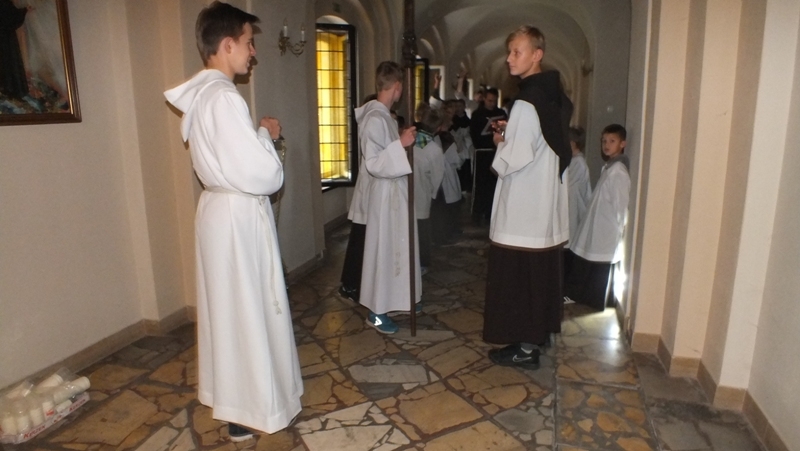 Z racji zbliżającego się liturgicznego wspomnienia św. Tarsycjusza, patrona ministrantów, w piątek, 4 listopada w naszej parafii przeżywaliśmy ministranckie święto. Obchody tej uroczystości rozpoczęły się Mszą św. o godz. 16.00. Została odprawiona w intencji naszych ministrantów oraz ich rodzin. Podczas Eucharystii wszyscy ministranci odnowili swoje przyrzeczenia Liturgicznej Służby Ołtarza. Siedmiu kandydatów oficjalnie rozpoczęło okres próby, a dwóch starszych kandydatów otrzymało kaptury i tym samym stali się ministrantami choralistami. Pozostali ministranci, po wcześniejszym przygotowaniu i egzaminie, otrzymali nowe posługi Liturgicznej Służby Ołtarza: ministranta światła, krzyża, księgi, ołtarza a także posługę lektora. Szczególną chwilą tej Uroczystości był moment, kiedy rodzice ministrantów wyrazili zgodę na służbę swoich synów w Liturgicznej Służbie Ołtarza. Po zakończonej Mszy św. w refektarzu klasztornym odbyła się wspólna agapa tzn. słodki poczęstunek.