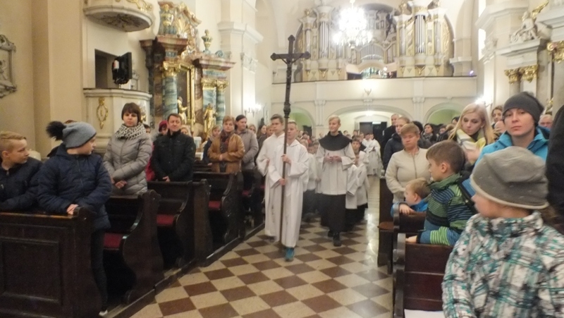 Z racji zbliżającego się liturgicznego wspomnienia św. Tarsycjusza, patrona ministrantów, w piątek, 4 listopada w naszej parafii przeżywaliśmy ministranckie święto. Obchody tej uroczystości rozpoczęły się Mszą św. o godz. 16.00. Została odprawiona w intencji naszych ministrantów oraz ich rodzin. Podczas Eucharystii wszyscy ministranci odnowili swoje przyrzeczenia Liturgicznej Służby Ołtarza. Siedmiu kandydatów oficjalnie rozpoczęło okres próby, a dwóch starszych kandydatów otrzymało kaptury i tym samym stali się ministrantami choralistami. Pozostali ministranci, po wcześniejszym przygotowaniu i egzaminie, otrzymali nowe posługi Liturgicznej Służby Ołtarza: ministranta światła, krzyża, księgi, ołtarza a także posługę lektora. Szczególną chwilą tej Uroczystości był moment, kiedy rodzice ministrantów wyrazili zgodę na służbę swoich synów w Liturgicznej Służbie Ołtarza. Po zakończonej Mszy św. w refektarzu klasztornym odbyła się wspólna agapa tzn. słodki poczęstunek.