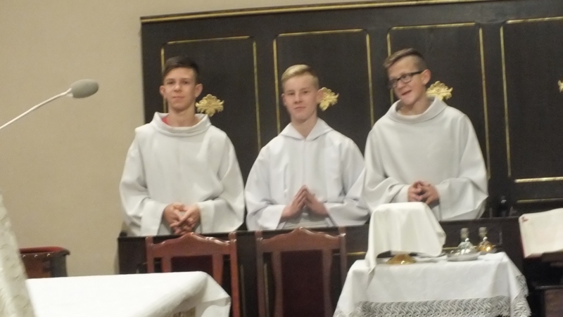 Z racji zbliżającego się liturgicznego wspomnienia św. Tarsycjusza, patrona ministrantów, w piątek, 4 listopada w naszej parafii przeżywaliśmy ministranckie święto. Obchody tej uroczystości rozpoczęły się Mszą św. o godz. 16.00. Została odprawiona w intencji naszych ministrantów oraz ich rodzin. Podczas Eucharystii wszyscy ministranci odnowili swoje przyrzeczenia Liturgicznej Służby Ołtarza. Siedmiu kandydatów oficjalnie rozpoczęło okres próby, a dwóch starszych kandydatów otrzymało kaptury i tym samym stali się ministrantami choralistami. Pozostali ministranci, po wcześniejszym przygotowaniu i egzaminie, otrzymali nowe posługi Liturgicznej Służby Ołtarza: ministranta światła, krzyża, księgi, ołtarza a także posługę lektora. Szczególną chwilą tej Uroczystości był moment, kiedy rodzice ministrantów wyrazili zgodę na służbę swoich synów w Liturgicznej Służbie Ołtarza. Po zakończonej Mszy św. w refektarzu klasztornym odbyła się wspólna agapa tzn. słodki poczęstunek.