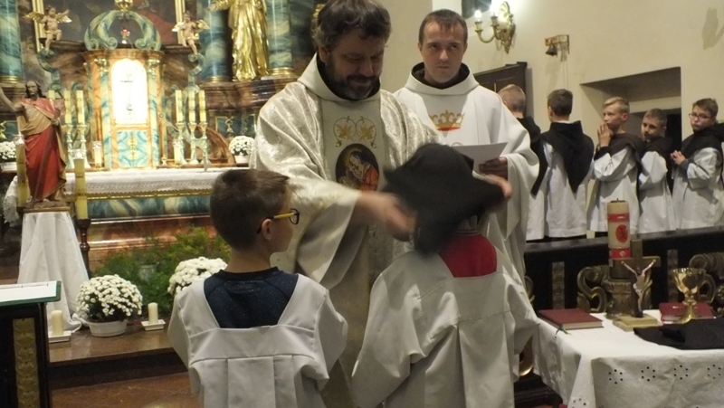 Z racji zbliżającego się liturgicznego wspomnienia św. Tarsycjusza, patrona ministrantów, w piątek, 4 listopada w naszej parafii przeżywaliśmy ministranckie święto. Obchody tej uroczystości rozpoczęły się Mszą św. o godz. 16.00. Została odprawiona w intencji naszych ministrantów oraz ich rodzin. Podczas Eucharystii wszyscy ministranci odnowili swoje przyrzeczenia Liturgicznej Służby Ołtarza. Siedmiu kandydatów oficjalnie rozpoczęło okres próby, a dwóch starszych kandydatów otrzymało kaptury i tym samym stali się ministrantami choralistami. Pozostali ministranci, po wcześniejszym przygotowaniu i egzaminie, otrzymali nowe posługi Liturgicznej Służby Ołtarza: ministranta światła, krzyża, księgi, ołtarza a także posługę lektora. Szczególną chwilą tej Uroczystości był moment, kiedy rodzice ministrantów wyrazili zgodę na służbę swoich synów w Liturgicznej Służbie Ołtarza. Po zakończonej Mszy św. w refektarzu klasztornym odbyła się wspólna agapa tzn. słodki poczęstunek.