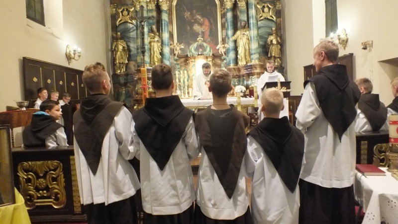 Z racji zbliżającego się liturgicznego wspomnienia św. Tarsycjusza, patrona ministrantów, w piątek, 4 listopada w naszej parafii przeżywaliśmy ministranckie święto. Obchody tej uroczystości rozpoczęły się Mszą św. o godz. 16.00. Została odprawiona w intencji naszych ministrantów oraz ich rodzin. Podczas Eucharystii wszyscy ministranci odnowili swoje przyrzeczenia Liturgicznej Służby Ołtarza. Siedmiu kandydatów oficjalnie rozpoczęło okres próby, a dwóch starszych kandydatów otrzymało kaptury i tym samym stali się ministrantami choralistami. Pozostali ministranci, po wcześniejszym przygotowaniu i egzaminie, otrzymali nowe posługi Liturgicznej Służby Ołtarza: ministranta światła, krzyża, księgi, ołtarza a także posługę lektora. Szczególną chwilą tej Uroczystości był moment, kiedy rodzice ministrantów wyrazili zgodę na służbę swoich synów w Liturgicznej Służbie Ołtarza. Po zakończonej Mszy św. w refektarzu klasztornym odbyła się wspólna agapa tzn. słodki poczęstunek.