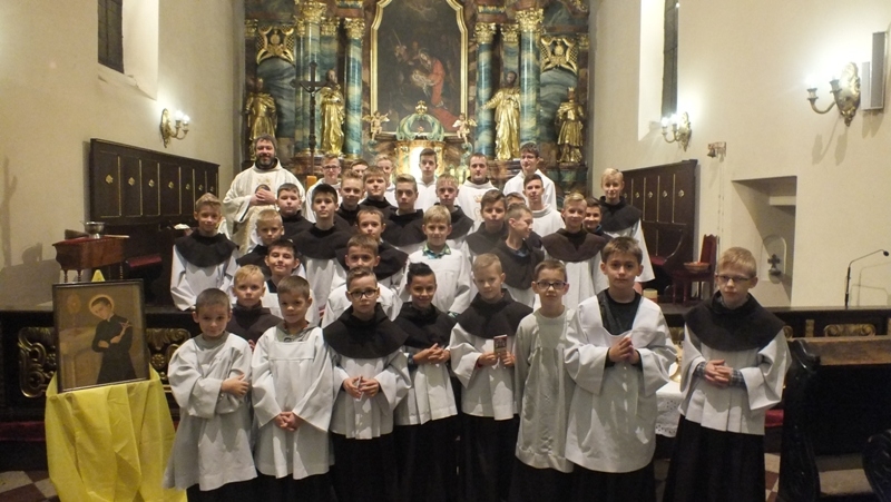 Z racji zbliżającego się liturgicznego wspomnienia św. Tarsycjusza, patrona ministrantów, w piątek, 4 listopada w naszej parafii przeżywaliśmy ministranckie święto. Obchody tej uroczystości rozpoczęły się Mszą św. o godz. 16.00. Została odprawiona w intencji naszych ministrantów oraz ich rodzin. Podczas Eucharystii wszyscy ministranci odnowili swoje przyrzeczenia Liturgicznej Służby Ołtarza. Siedmiu kandydatów oficjalnie rozpoczęło okres próby, a dwóch starszych kandydatów otrzymało kaptury i tym samym stali się ministrantami choralistami. Pozostali ministranci, po wcześniejszym przygotowaniu i egzaminie, otrzymali nowe posługi Liturgicznej Służby Ołtarza: ministranta światła, krzyża, księgi, ołtarza a także posługę lektora. Szczególną chwilą tej Uroczystości był moment, kiedy rodzice ministrantów wyrazili zgodę na służbę swoich synów w Liturgicznej Służbie Ołtarza. Po zakończonej Mszy św. w refektarzu klasztornym odbyła się wspólna agapa tzn. słodki poczęstunek.