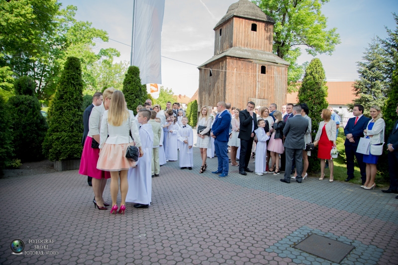 Dzieci z wielkim zaangażowaniem i przejęciem uczestniczyły we Mszy św., którą celebrował ojciec proboszcz Ksawery Majewski. Na zakończenie Eucharystii dzieci podziękowały: Panu Jezusowi, za to, że zamieszkał w ich sercach, rodzicom za ich miłość, ojcu Ksaweremu za przygotowanie do tej Uroczystości. Następnie dzieci z rąk ojca proboszcza otrzymały chleby, jako wezwanie, aby i one stawały się dobre jak chleb i zawsze miały kochające serca. Po zrobieniu wspólnego zdjęcia otrzymały wydanie specjalne „Franusia Informatorka”, w którym znajdowały się zdjęcia dzieci z Franusiem i Klarusią. Dzieciom życzymy, aby zawsze kroczyły drogą Bożej miłości i aby były pełne radości, iż odtąd będą mogły przyjmować Chrystusa obecnego w Najświętszym Sakramencie. Dziękujemy także wszystkim, którzy byli zaangażowani w przygotowanie i przebieg uroczystości Pierwszej Komunii Świętej.
