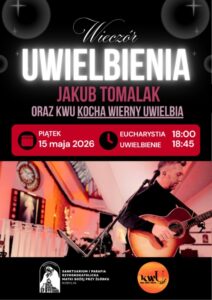 UWIELBIENIE Już dziś chcemy zaprosić Was na modlitwę uwielbienia, którą poprowadzi znany Jakub Tomalak wraz z częścią zespołu KWU. 15.05.2026 18:00 – Eucharystia 18:45 – Adoracja Najświętszego Sakramentu z modlitwą uwielbienia Serdecznie zapraszamy! DNI KRZYŻOWE – MODLITWY O DOBRE URODZAJE MODLITWA Z BŁOGOSŁAWIEŃSTWEM DLA MATURZYSTÓW